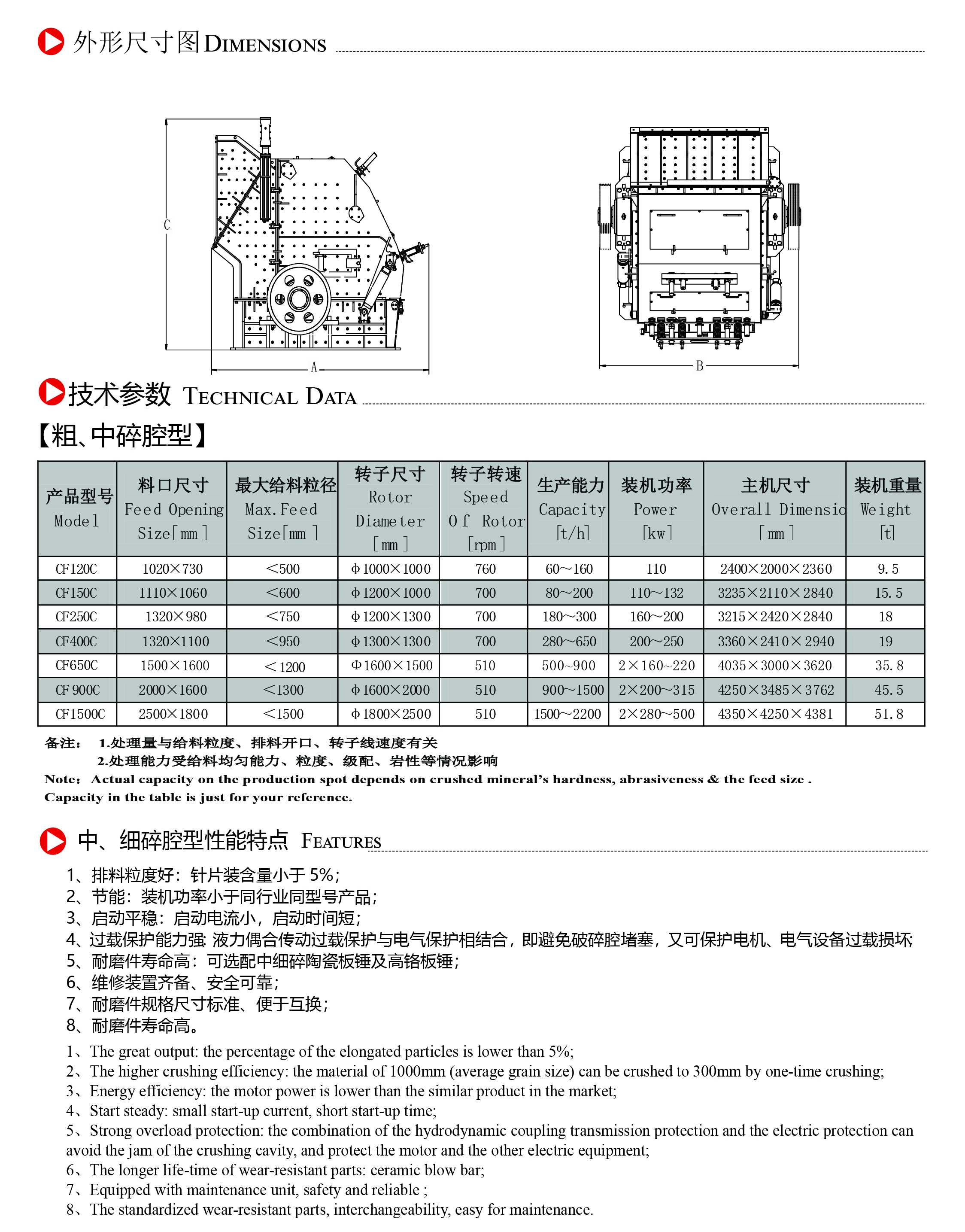 ? ? 成智CF系列高速粗/中碎反擊式破碎機(jī),具有進(jìn)料粒度大、產(chǎn)量高、粒型好、整機(jī)重量輕、安全性能好、耐磨件使用壽命長等特點(diǎn)。 ? ? 廣泛用于水泥、建材、化工、冶金、電力等行業(yè)中的硬物料破碎,也適用于高速公路、鐵路、水利工程等特殊行業(yè)使用的建筑骨料,如石灰?guī)r等中硬物料破碎;抗壓強(qiáng)度小于320Mpa的玄武巖、安山巖、鵝卵石、花崗巖等物料。